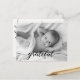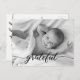 Personalizado com a foto do bebê na frente e uma mensagem especial no verso. Este design usa a palavra "Grateful" (Gratidão) em uma fonte elegante de letra manuscrita para um toque de sofisticação. Expresse sua emoção ao anunciar o nascimento do seu filho e envie sua gratidão ao mesmo tempo.