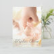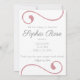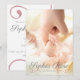 Anúncio de Nascimento de Bebê Menina com Rotulo de Nome em Script Pink Swirl vem com uma foto de capa na frente com uma sobreposição de script de nome de bebê. O verso tem todos os detalhes entre decorações de redemoinho rosa