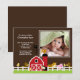 Nosso anúncio de nascimento de bebê com foto é uma maneira doce de contar aos familiares e amigos que seu pequeno querido chegou. O cartão de anúncio de foto apresenta a cena mais fofa da fazenda em um fundo marrom. Adicione sua foto e informações e está tudo pronto! ©cocoa studio