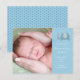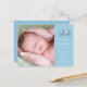 Cartão moderno de anúncio de nascimento de bebê para apresentar seu lindo recém-nascido. A frente inclui uma foto do bebê, com adoráveis elefantes de bolinhas dos pais e do bebê em um fundo azul suave com texto branco elegante para os detalhes do seu bebê. O verso tem um padrão de bolinhas em um fundo azul correspondente. Uma maneira encantadora de apresentar sua nova chegada! Desenhado por Thisisnotme©