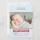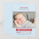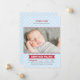 Anuncie o seu calouro do ano com este cartão de anúncio de nascimento de bebê com tema de beisebol, apresentando um cabeçalho "Apresentando o Mais Novo Membro da Nossa Equipe" em letras esportivas vermelhas em um fundo de listras azuis bebê. O nome do bebê aparece em uma faixa vermelha com estatísticas de nascimento em uma grade estilo placar. O detalhe de costura de beisebol vermelha adiciona um toque autêntico. Uma mensagem de texto "Recebido com Amor" e todo o texto são totalmente personalizáveis.