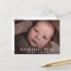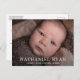 Cartão postal de anúncio de nascimento de menino moderno com design limpo e minimalista, apresentando o nome do bebê em uma fonte serifada grande, juntamente com suas estatísticas de nascimento, sobre sua foto favorita em bleed total. A parte traseira tem sua mensagem personalizada e endereço de devolução em preto sobre um fundo branco. Este cartão postal simples, porém elegante, é uma ótima maneira de anunciar a chegada do seu bebê menino.