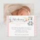 Bebê adorável com uma coroa floral doce - o design perfeito para o anúncio de nascimento da sua menina com tema de vaca! Pastéis claros e suaves acentuados com fundo de madeira branca rústica. Uma maneira ideal de celebrar com estilo country de fazenda rústica!