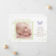 Apresente seu novo bebê com este adorável anúncio de nascimento personalizável de borboleta roxa. Basta substituir a foto e as informações pelas suas. Envelope personalizado e selo de correio combinando.