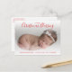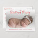 Anuncie o nascimento de seu novo bebê ou garota com este cartão-postal de anúncio fotográfico moderno com a mensagem "Nossa Pequena Bênção de Natal" em uma letra vermelha elegante no topo e o nome e a natalidade do seu bebê no fundo, sobre sua foto horizontal favorita. O backside tem a sua mensagem pessoal e o seu endereço de devolução para facilitar o envio.