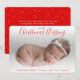 Anuncie o nascimento de seu novo bebê ou garota com este cartão de anúncio fotográfico moderno com a mensagem "Nossa Pequena Bênção de Natal" em uma letra vermelha elegante no topo. Adicione o nome do seu bebê e as estatísticas de nascimento ao fundo. Use a modelo para adicionar sua própria mensagem pessoal ao verso.