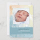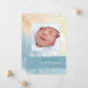 As cores em aquarela criam um fundo suave de azul, amarelo pálido, melão e branco neste moderno anúncio de nascimento. (<a href='http://www.freepik.com/free-vector/watercolor-texture-with-soft-tones_1070794.htm'>Projetado por Freepik</a>).<br/><br/>O cartão é fácil de personalizar com sua redação, fonte, cor da fonte, opções de forma de papel e escolha de seis tipos de papel.<br/><br/>Não é exatamente o que você está procurando? Todos os nossos produtos podem ser personalizados para atender às suas necessidades sem custo adicional.<br/><br/>Basta entrar em contato conosco em askcottonlamb@gmail.com.<br/><br/>Produtos coordenados disponíveis: Basta perguntar!