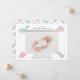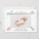 Cartão de anúncio de nascimento bonito com uma foto do seu recém-nascido com ilustração de dinossauros cor-de-rosa.