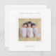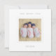 Anúncio de nascimento de Foto de Triplets Mínimos Simples. Um design minimalista contemporâneo para anunciar o nascimento dos vossos trigêmeos. Basta substituir a foto de exemplo por sua própria de suas novas chegadas e personalizar facilmente o texto na frente e atrás. Para obter melhores resultados, recorte sua foto primeiro ao quadrado.