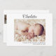 Anuncie a chegada do seu novo bebê com este simples anúncio de nascimento do nome da foto. Todo o texto na parte frontal e traseira do cartão pode ser personalizado. Personalize com 1 foto na frente e 3 fotos na parte de trás, juntamente com toda a informação de parto do seu bebê.