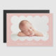 Íman simples e moderno de anúncio de nascimento com a fotografia do seu bebê aninhada dentro de uma imagem roxa redimensionada cor-de-rosa. Personalize o ímã de anúncio de nascimento adicionando o nome do seu bebê e informações adicionais em letras brancas.