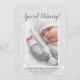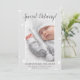 Compartilhe as boas notícias do seu "Parto Especial", o nascimento do seu novo bebê precioso com este anúncio de nascimento de fotos moderno. Adicione a sua foto desejada de orientação para retratos e personalize o modelo de texto com o nome do seu bebê e as estatísticas de natalidade. Há também um modelo de texto na parte traseira da placa para personalizar com o texto desejado. Este design tem um fundo de cinza leve com manchas brancas dispersas. Também está disponível em outras cores populares.