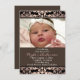 Este Elegante anúncio de nascimento personalizável apresenta uma cor damasco rosa e preta sobre um fundo castanho. Personalize-o adicionando fotos e detalhes na fonte de sua escolha!