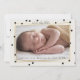 Um anúncio de nascimento de fotos moderno com um fundo leve neutro, polkadots espalhados e duas finas imagens de ouro.<a href="https://www.freepik.com/free-photos-vectors/baby">Foto do bebê criada por freepik - www.freepik.com</a>).<a href="https://www.freepik.com/free-photos-vectors/background">Vetor de fundo criado por rawpixel.com - www.freepik.com</a>). O cartão é fácil de personalizar com seu texto, fonte, cor da fonte e escolha de seis tipos de papel.<br/>() Não exatamente o que você está procurando? Todos os nossos produtos podem ser personalizados para atender às suas necessidades sem custos adicionais.<br/>() Basta entrar em contato conosco em askcottonlamb@gmail.com<br/>() Coordenando os produtos disponíveis: