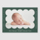 Íman simples e moderno de anúncio de nascimento com a fotografia do seu bebê aninhada dentro de um quadro verde de floresta com escala. Personalize o ímã de anúncio de nascimento adicionando o nome do seu bebê e informações adicionais em letras brancas.