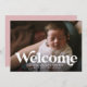Uma ousada "bem-vinda" ao estilo vintage contra uma foto de solteiro faz uma maneira doce e na moda para apresentar seu novo bebê. Com espaço para nome e estatísticas na frente com a foto, o verso deste anúncio de nascimento é um rosa doce empoeirado (a cor pode ser alterada clicando em "personalizar"). Perfeito para pais novos legal introduzirem sua nova garotinha com um pouco de talento vintage moderno!