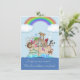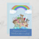 Anúncio de nascimento bonito para gêmeos, com o tema da Arca de Noah com animais adoráveis enchendo o barco e o arco-íris e nuvens no céu. A Arca de Noah original obra de arte...