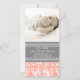 Nova menina bebê anunciando cartões com fotos personalizados em adorável e elegante cor de laranja rosa, cinza e cor damasco floral clássica branca, totalmente personalizável com a foto do seu bebê e os detalhes de natalidade, uma maneira excelente de compartilhar a feliz notícia do nascimento de sua filha com amigos e familiares.