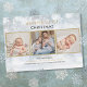 Divulgue a alegria do nascimento de Natal com este elegante cartão de anúncio de nascimento de Natal moderno. Personalize a frente com suas 3 fotos especiais, nome do bebê e estatísticas de nascimento, e mensagem de Natal, com um lindo fundo de neve caindo. Criado por Thisisnotme©
