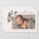 Um doce anúncio de nascimento de fotos com lindos botânicos rosa antigos no topo de um fundo pastel com foto de paisagem. O backside oferece um lugar para duas fotos adicionais para mostrar seu novo nascer sozinho com uma vinheta de bouquet de rosa adicional para um toque de talento.