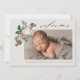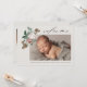 Um doce anúncio de nascimento de fotos com lindos botânicos rosa antigos no topo de um fundo pastel com foto de paisagem. O backside oferece um lugar para duas fotos adicionais para mostrar seu novo nascer sozinho com uma vinheta de bouquet de rosa adicional para um toque de talento.