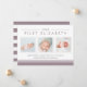 Anuncie a chegada de seu doce bebê com nossos anúncios de nascimento modernos e neutros no estilo de colagem, apresentando três de suas fotos favoritas de recém-nascidos em formato quadrado, acentuadas com as teclas modernas e elementos listrados em preto suave e roxo leve empoeirado. Personalize com o nome do seu bebê, as estatísticas de natalidade e a mensagem da família usando os campos fornecidos.
