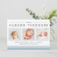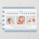 Anuncie a chegada de seu doce bebê com nossos anúncios de nascimento modernos e neutros no estilo de colagem, apresentando três de suas fotos favoritas de recém-nascidos em formato quadrado, acentuadas com os modernos tipos e elementos listrados em preto suave e azul claro do céu. Personalize com o nome do seu bebê, as estatísticas de natalidade e a mensagem da família usando os campos fornecidos.