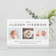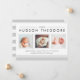 Anuncie a chegada de seu doce bebê com nossos anúncios de nascimento modernos e neutros no estilo de colagem, apresentando três de suas fotos favoritas de recém-nascidos em formato quadrado, acentuadas com as teclas modernas e elementos listrados em cinzas de pomba e preto nítido. Personalize com o nome do seu bebê, as estatísticas de natalidade e a mensagem da família usando os campos fornecidos.