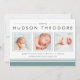 Anuncie a chegada de seu doce bebê com nossos anúncios de nascimento modernos e neutros no estilo de colagem, apresentando três de suas fotos favoritas de recém-nascidos em formato quadrado, acentuadas com os modernos tipos e elementos listrados em preto suave e verde verde-verde-verde-verde-claro. Personalize com o nome do seu bebê, as estatísticas de natalidade e a mensagem da família usando os campos fornecidos.