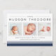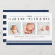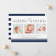 Anuncie a chegada de seu doce bebê com nossos anúncios de nascimento modernos e neutros no estilo de colagem, apresentando três de suas fotos favoritas de recém-nascidos em formato quadrado, acentuadas com os modernos caracteres tipográficos e elementos listrados em preto suave e azul marinho. Personalize com o nome do seu bebê, as estatísticas de natalidade e a mensagem da família usando os campos fornecidos.