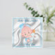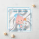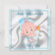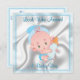 Anúncio de nascimento do Bebê Bestial - olhem para trás com a borda azul do bebê - bonitinho de desenho animado com fralda azul e chapéu segurando uma garrafa de bebê azul