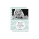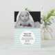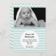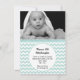 Doce anúncio personalizado de nascimento de bebê fotográfico feito em menta. Uma foto personalizada de bebê decora a parte superior da placa plana, com um padrão chevron branco e menta por baixo da foto. Uma área de texto circular branca, no meio inferior do convite, tem texto preto personalizado pronto para personalizar. É uma maneira bonita de anunciar a chegada do seu bebê aos amigos e à família.