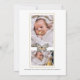 Um anúncio de nascimento de colagem de fotos de bebê bonitinho moderno para enviar aos seus amigos e familiares. Foto de bebê adorável na frente com elementos de borboleta, e uma coleção de fotos de bebê de duas fotos nas costas com seus nomes. Substitua os exemplos de fotos por suas novas fotos de bebês.