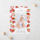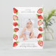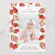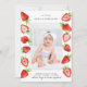 Cartão de anúncio de nascimento bonito com uma foto vertical do seu recém-nascido com ilustração aquosa de morangos.