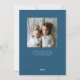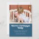 Anuncie a chegada do seu novo pequeno enquanto distribui uma pequena alegria de Natal com este anúncio de natalidade de feriado. Ele apresenta as palavras "Feliz Natal Bebê" em branco sobre fundo azul. Tem espaço para uma foto na frente e atrás.