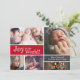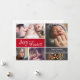 Personalize este cartão de Natal/anúncio de bebê em colagem com suas fotos favoritas. O cartão é perfeito para expressar seu entusiasmo ao anunciar o nascimento do seu primeiro bebê e enviar seus cumprimentos de Natal para a família e agradecer ao mesmo tempo. As palavras, fotos, cumprimentos e despedidas podem ser facilmente personalizados conforme necessário. Bloco de acento vermelho.