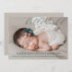 Script do Cartão com fotos de Anúncio de Nascimento Bebê. Sobreposição de script com as palavras " olá mundo". Design versátil, você pode personalizar para anunciar sua nova menina. Selecione o seu fundo de cor sólida na parte de trás da placa para corresponder à sua foto do bebê.