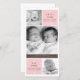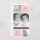 Apresente seus pequenos ao mundo com este belo anúncio de nascimento moderno para gêmeos, em katkadoodle.com. Fundo cor-de-rosa macio e pastel, tipografia contemporânea em marrom-mocha com um estilo simples que mostra três fotos retratos de suas doces meninas. Também disponível para gêmeos.