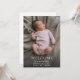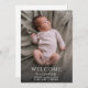 Um cartão com fotos moderno e fofo para enviar aos seus amigos e família para receber o seu recém-nascido. Anúncio de cartão de boas-vindas com estatísticas de natalidade. Substitua esta foto pela foto do seu bebê.