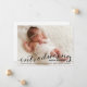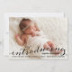 Este belo anúncio do bebê fotográfico apresenta um belo roteiro de caligrafia sobre uma foto de sangria de cheio do seu novo pequeno.
