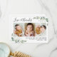 Um moderno cartões de agradecimentos de bebê com foto de eucalipto. As fotografias dos modelos são para fins ilustrativos e podem ser mudadas para as suas.