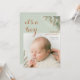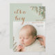 Uma fotografia de um bebê adorável, adorável e adormecido em uma faixa de dois tons e um anúncio de nascimento de cacau leve; esportivo de uma tipografia fofa e folhas de boho-terra. Basta substituir a foto de exemplo carregando sua própria foto no modelo.