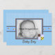 Apresente o seu homenzinho com este doce anúncio de nascimento. Uma fita azul com uma trilha marrom, tem uma trilha de abelhas bonitinhas e gordinhas. A metade superior do fundo é uma xadrez azul/gingham, e a parte inferior é um azul texturizado. Um quadro marrom e azul com uma abelha doce sentada no canto, está pronto para segurar a foto da sua pequena!