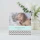 Novo bebê bebezinho anunciando cartões com fotos personalizados em azul-turquesa azul-turquesa, cinza e diversão branca e padrão moderno de zigzags-chevron, totalmente personalizável com a foto do seu bebê e os detalhes do nascimento, uma forma excelente de compartilhar a feliz notícia do nascimento do seu filho com amigos e familiares.