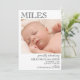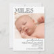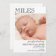 Apresentando nosso anúncio de nascimento moderno e elegante, a maneira perfeita de apresentar seu pequeno ao mundo. Esta carta maravilhosamente projetada apresenta uma foto do seu recém-nascido junto com uma mistura de caligrafia moderna e fontes tradicionais, criando um eterno e um aspecto sofisticado. Celebre esta alegre ocasião com estilo e graça com nosso anúncio de nascimento personalizado.