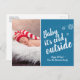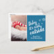 Floco de neve caprichoso sobre um fundo azul moderno com as palavras em letra escrita escrita com letra "Bebê é frio lá fora". Personalize a foto com seu belo bebê novo e personalize o texto conforme necessário, inclua os detalhes do bebê para este cartão postal de anúncio de parto de feriado. Celebre o primeiro Natal do bebê e espalhe boa alegria.