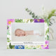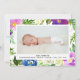 Anúncio de nascimento de fotografias feminina, caprichosa e elegante, com flores púrpuras, azuis e cor-de-água rosa. Este anúncio de nascimento feminino é uma maneira perfeita de compartilhar seu pacote de alegria. Outras cores disponíveis.