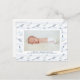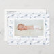 Anuncie o nascimento do seu pacote de alegria com este cartão postal de anúncio de nascimento fotográfico caprichoso. Ele apresenta um padrão de aquarela de gaivotas e listras azuis. Personalize adicionando fotos, nome, data, hora e outros detalhes do evento. As cores são perfeitas para anúncios de nascimento de menino.