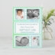 Envie quatro de suas próprias fotos para a frente deste anúncio contemporâneo de chegada de bebê com estampa xadrez verde e personalize o texto com as informações do seu bebê. Se as fotografias enviadas não atenderem às suas preferências, certifique-se de usar o link: "Editar isto em nossa ferramenta de design agora"! Este design também pode ser personalizado como um convite de chá de bebê ou batizado!