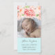 Novo bebê bebê nasceu anunciando cartões personalizados de foto em azul-claro-pastel com bonito flores cor-de-água rosa-claro-claro, totalmente personalizáveis com a foto do seu bebê e os detalhes de nascimento, uma forma excelente de compartilhar a feliz notícia do nascimento de sua filha com amigos e familiares.a